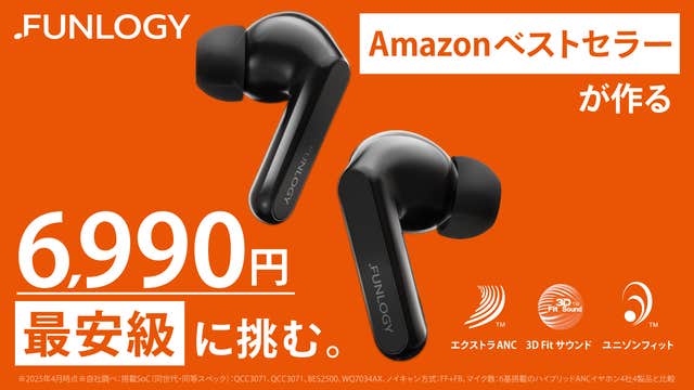 高性能なのに手が届きやすい価格の日本ブランドイヤホンをお探しの方に朗報です。FUNLOGY Earbuds は、VGP2025 SUMMER でコスパ大賞も受賞した話題の完全ワイヤレスイヤホン。ANC(アクティブノイズキャンセリング)とENC(環境ノイズ除去)に対応し、最大60時間連続再生&ワイヤレス充電にも対応。日本の設計品質×充実機能で、日常の音体験が確実にアップグレードします。